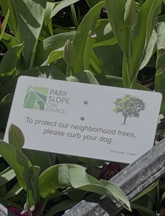 - The Civic Council offers a polite, inoffensive, durable and easily installed tree bed sign for $25. Order them here.